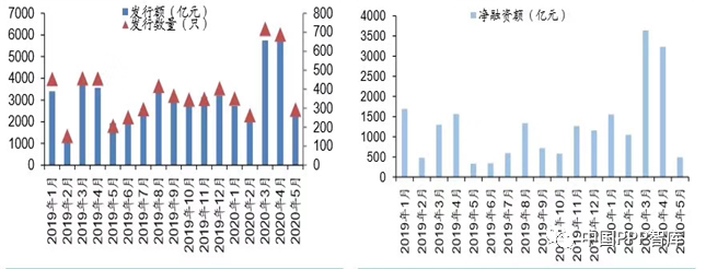 尤其是今年,为了抗击新冠疫情的影响,地方政府为了加快投资步伐,除了发行专项债之外,在城投债不论是发行量还是净融资量都比同期有大幅增长,如图2-4所示。