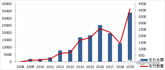 2018年7月23日,李克强总理在国务院常务会议中提出要引导金融机构保障融资平台公司合理融资需求,从一定程度纾解了城投公司的债务风险,随即市场对于城投公司的债券发行又出现了一波上涨。2019年,城投债发行数量累计4098只,发行金额33905.72亿元,创十年新高[7]。